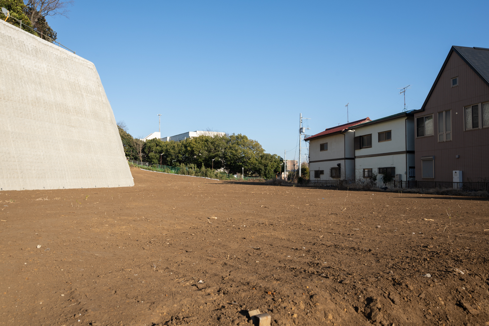 同じようなアングルで、上の画像が2026年1月10日のものです。綺麗に整地され、擁壁もできているのが分かります。ただ、重機もなく工事はお休み中なのかな? とも感じました。