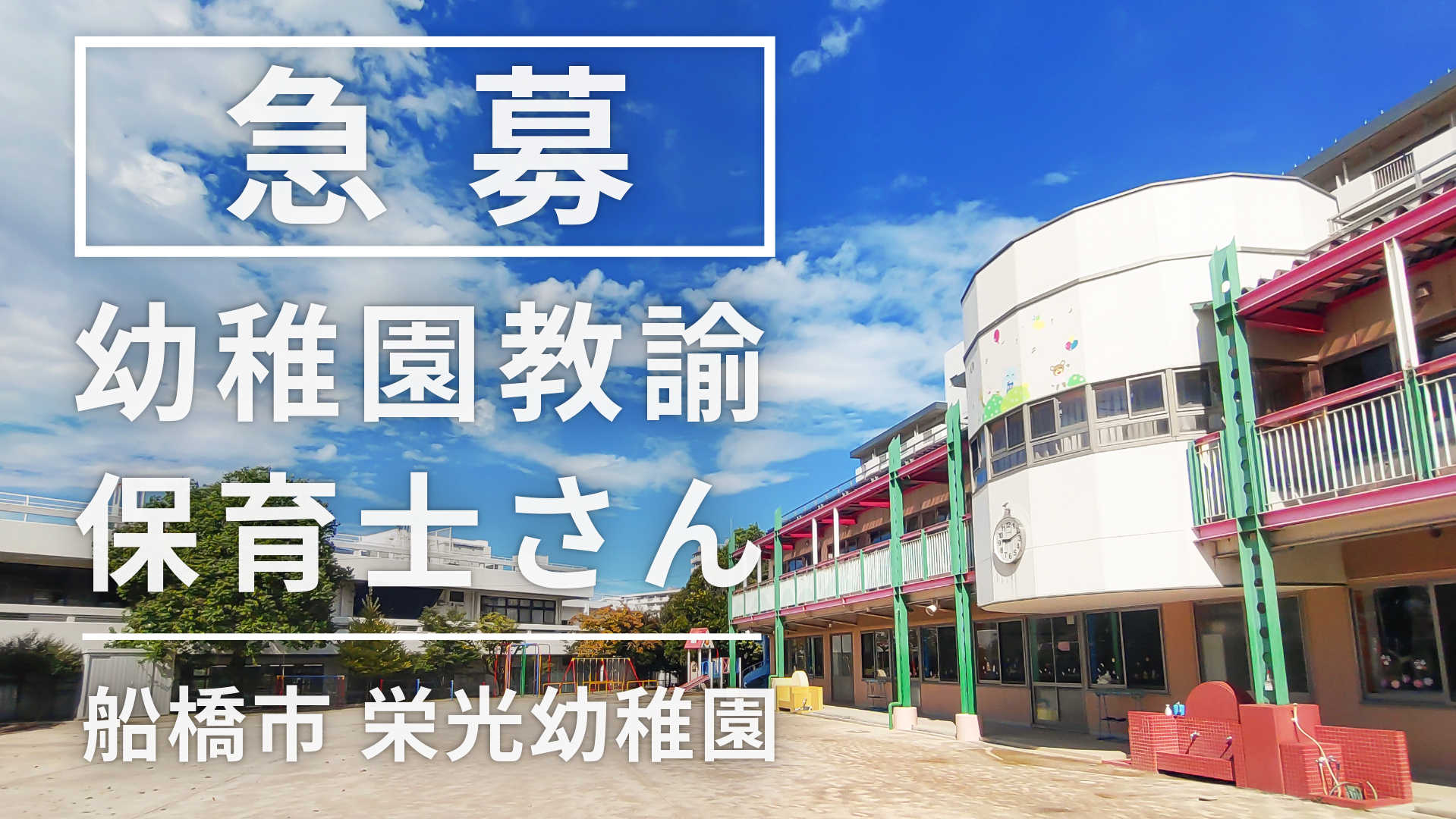 【求人】幼稚園教諭・保育士|船橋市 栄光幼稚園|高待遇です!