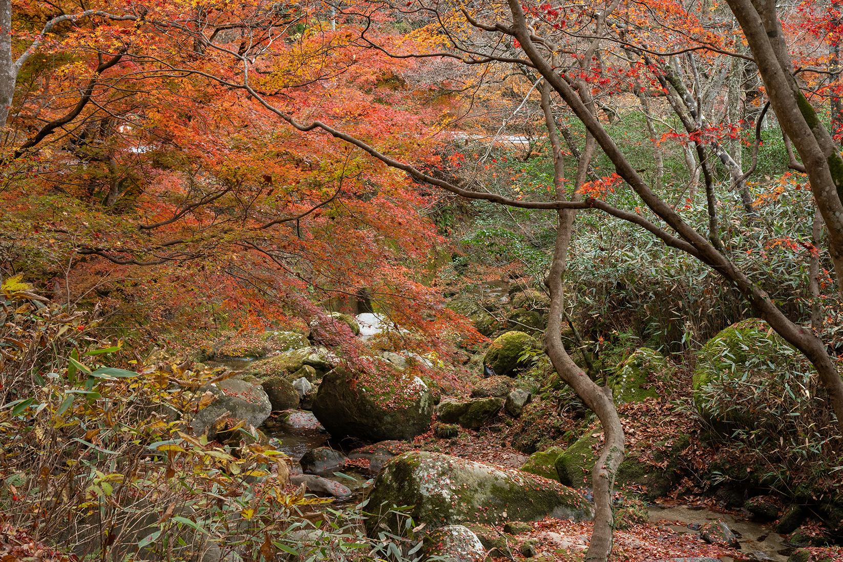 平日ということもあり、花貫渓谷はそれほど混んでいませんでした。東京近郊の紅葉スポットに比べると非常に静かです。
